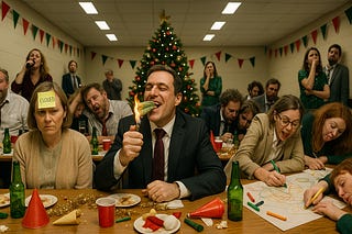 A sobering review of a year, and a suitably tawdry Christmas Party