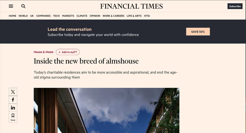 Great to see some media coverage of Appleby Blue, the flagship ‘Almshouse for the 21st Century’ I have been honoured to be involved in shaping and supporting, for United St Saviour’s Charity. I visited recently, and was blown away. Not least, it actually looked like architect’s visualisations - far from common.