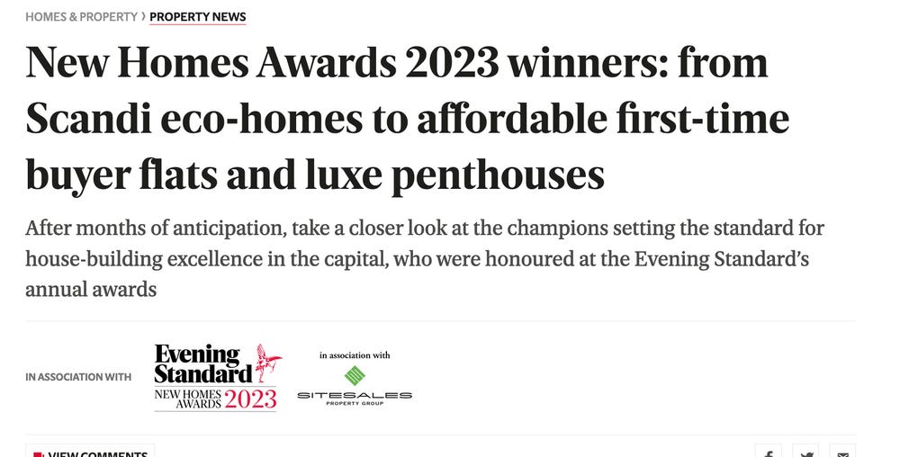 Delighted to see that Appleby Blue Almshouse has won the Evening Standard New Homes Best Retirement Home and the Grand Prix 2023.