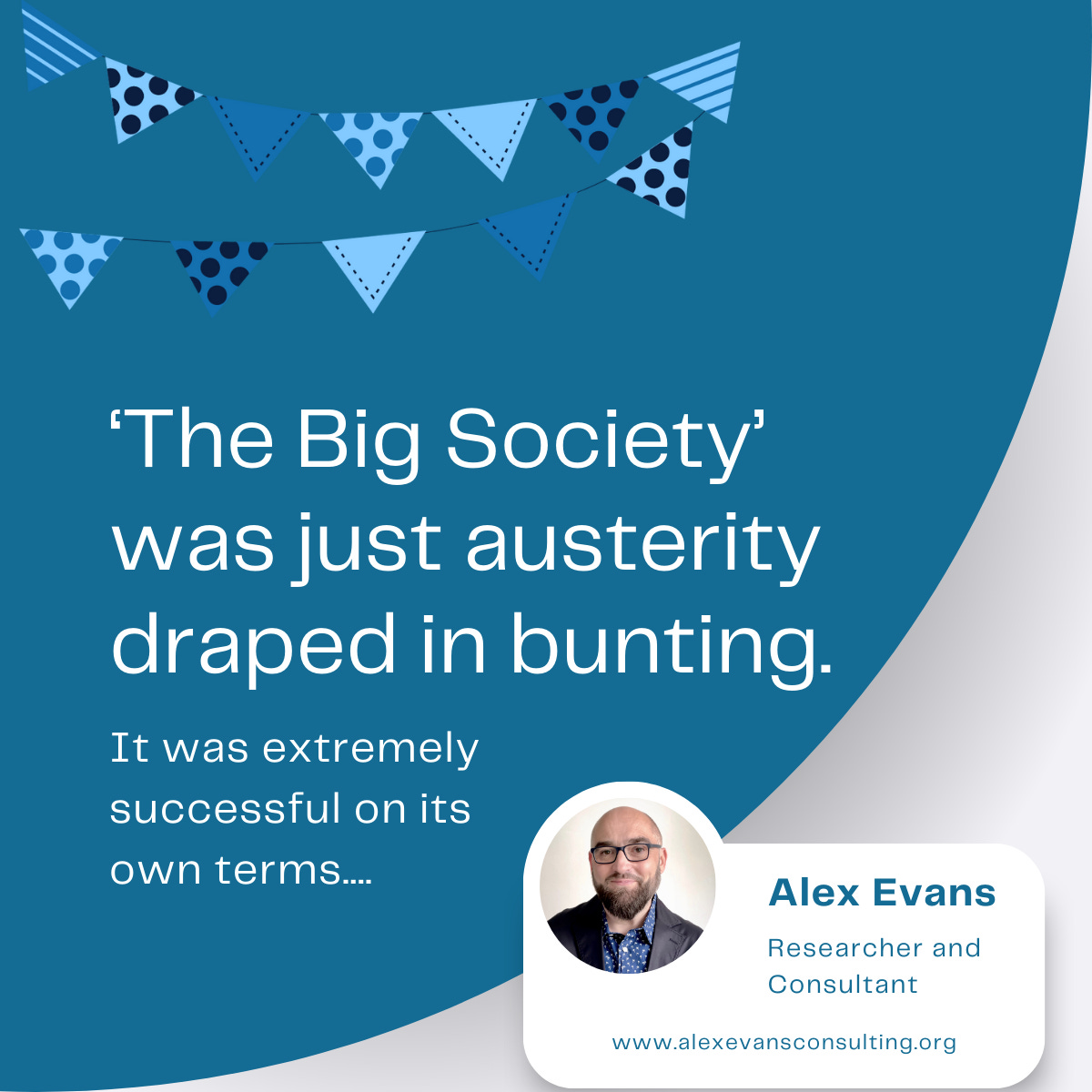 Remember the Big Society? We're living in it. And it was a HUGE success... If the goal was to decimate the public sector, transfer the responsibility to individuals, and use voluntarism as a fig leaf for austerity and the resultant social atrophy. Big Society was just Small State - it was austerity draped in bunting.