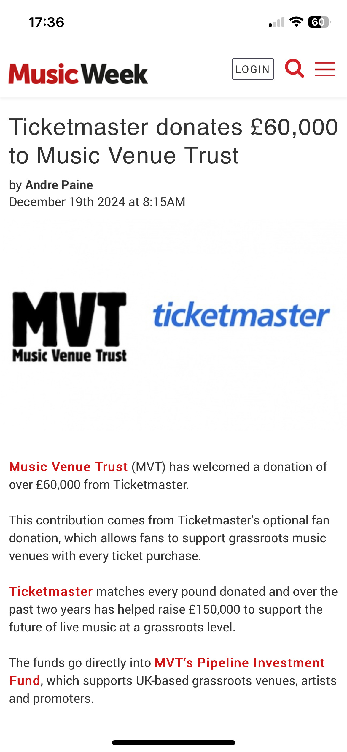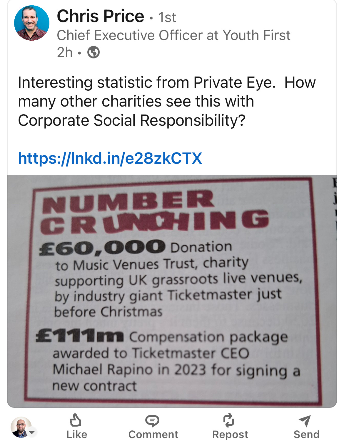 Ticketmaster gave the Music Venues Trust £60k to support grassroots music venues. This is beyond insulting, and there’s a sort of satanic cynicism to this that truly takes my breath away.