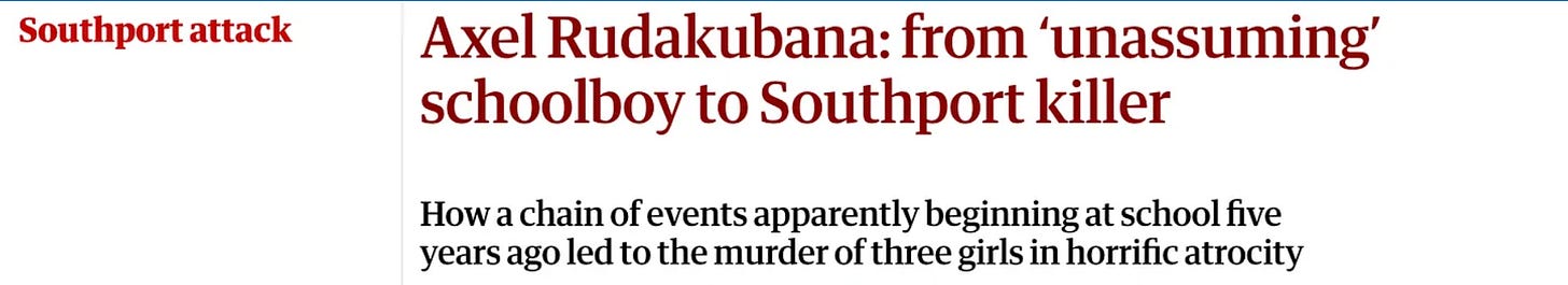 What follows is an extended version of a LinkedIn post, which as ever I can’t control whether anyone sees. As I said last weekend, I strongly suspect cuts in child and adolescent mental health services contributed to the Southport tragedy. There are many factors - but so far I’ve seen no mention of this.