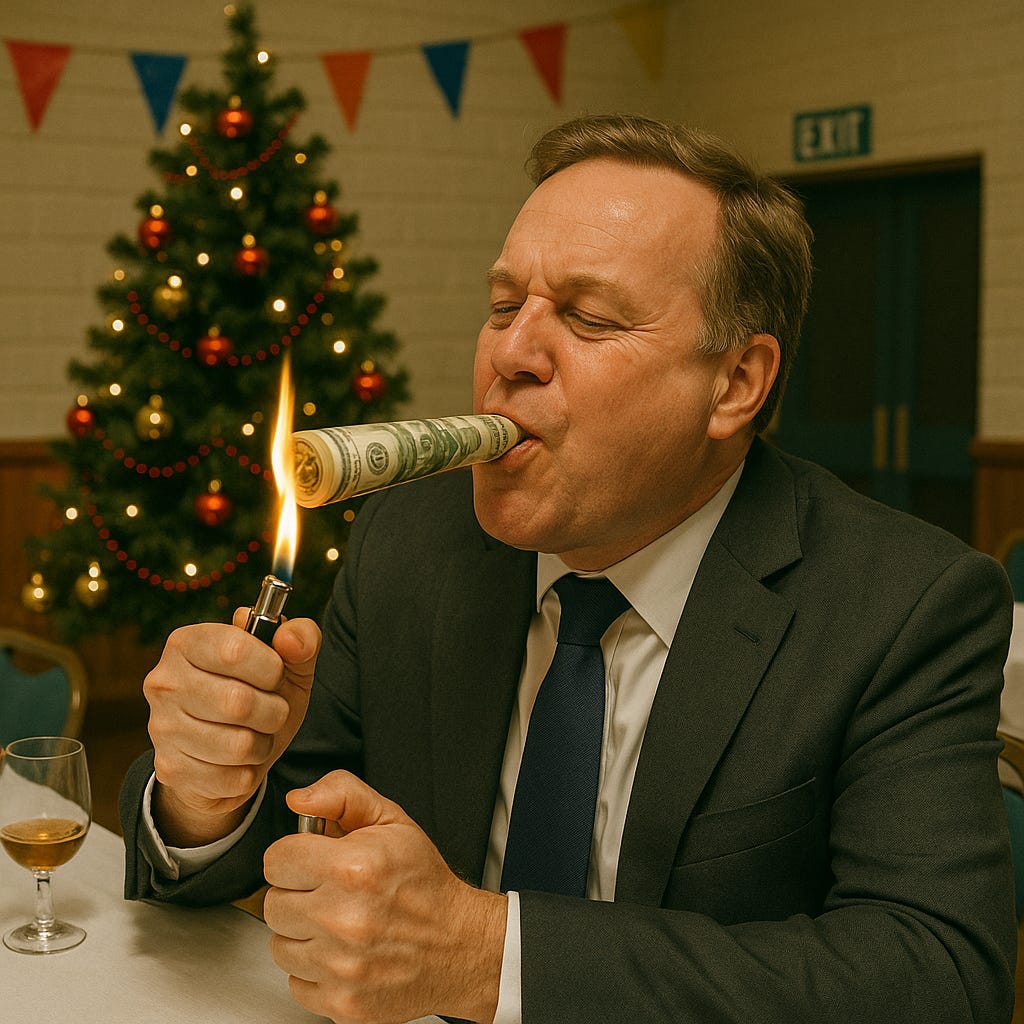 A sobering review of a year, and a suitably tawdry Christmas Party