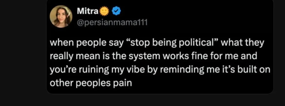 Meanwhile we all started railing against growing fascism in the US, despite having kept fairly quiet when Suella Braverman was actively trying to get mobs to set fire to community and law centres in case there were migrants in them. That was different, we said, because, you know, it might have affected our funding.
