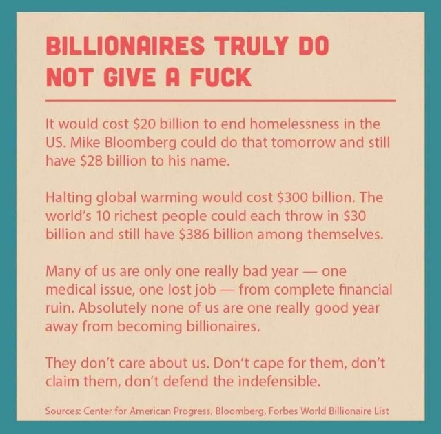 But he was also clear that it is important that the ultra-rich are seen to act generously so that any changes to their status or contributions to society (tax!) are reasonable, and not decided by ‘the mob’. You can imagine who ‘the mob’ is here. (Yes! It’s you and me.)